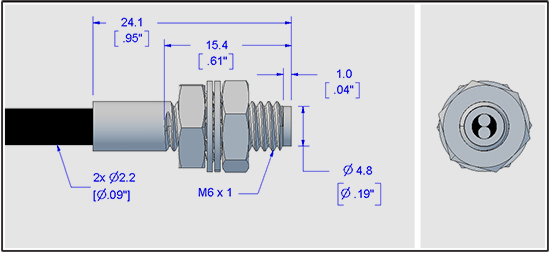 M6x1 SS sensing tip DC-1500-22, 2 +/- 0.05 m